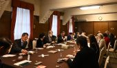 美術茶話会のルーツは、倶楽部で開かれていた茶会に求めることができます。茶席を彩る茶道具の名品を鑑賞するうち、やがて、対象は仏像、仏画など仏教美術を含む美術全般へと広がり、昭和55年(1980)、美術茶話会の創設に至りました。現在、1・2・7・8月を除く毎月、近畿一円の庭園や美術館を探訪し、社寺を巡拝します。例会のない2月、8月には研究者らを招き、訪問先に関連したテーマや時流に応じたテーマで公開講演会を開催。日本美術史に触れ、深く味わっています。